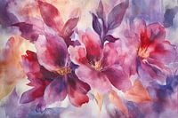 Dit prachtige aquarelontwerp toont een delicate balans tussen levendige kleuren en zachte vormen. De abstracte bloemen, weergegeven in rijke tinten van rood, paars, roze, en oranje, brengen een dynamische en tegelijkertijd serene uitstraling. Ideaal voor woonruimtes, kantoren of slaapkamers, voegt dit kunstwerk een vleugje verfijning en een gevoel van rust toe. Perfect voor iedereen die houdt van moderne kunst en een vleugje natuur in zijn interieur wil integreren.