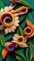 Een digitale beeldbewerking met bloemen en bladeren