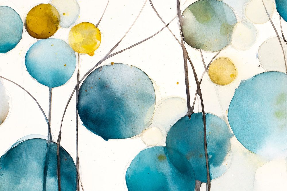 Een prachtig abstract ontwerp dat de natuur subtiel weergeeft door middel van zachte aquareltechnieken. Deze illustratie combineert zachte blauwtinten met warme gele accenten, waardoor een gevoel van rust en harmonie ontstaat. Perfect als muurdecoratie voor elke moderne ruimte, zoals een woonkamer, kantoor of slaapkamer. De delicate penseelstreken en minimalistische vormen maken het ideaal voor liefhebbers van moderne kunst en abstracte ontwerpen. Voeg een vleugje elegantie en verfijning toe aan je interieur met dit veelzijdige kunstwerk.