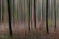 Abstracte bomen in een bos in de Achterhoek gefotografeerd met subtiele verticale beweging zodat schilderachtig effect ontstaat