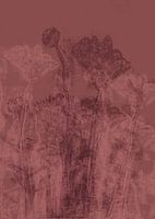Collage van een monotype van echte bloemen gecombineerd met kleurtexturen.