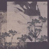Collage van een monotype van echte bloemen gecombineerd met kleurtexturen.