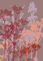 Collage van een monotype van echte bloemen gecombineerd met kleurtexturen.