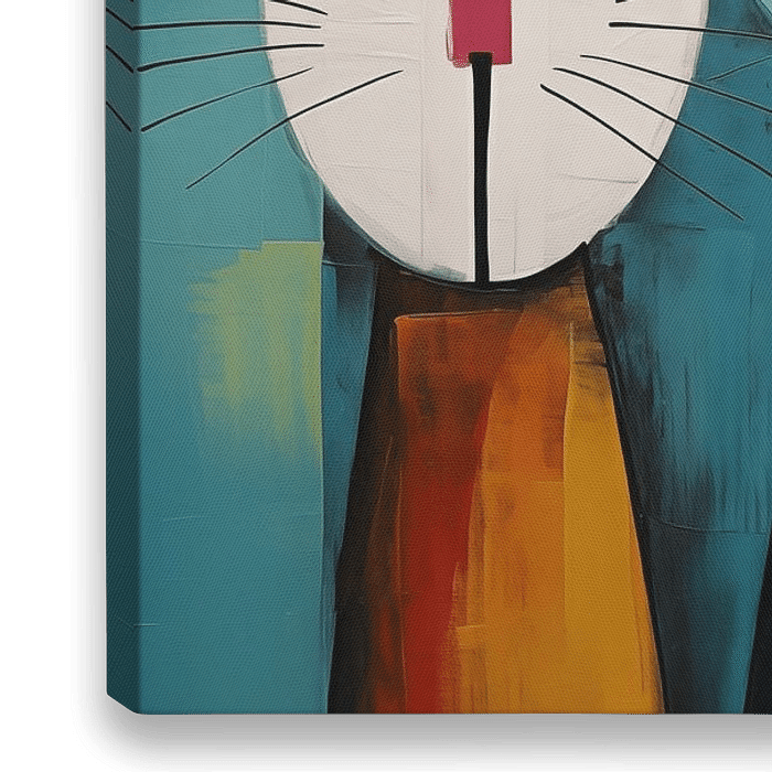 Abstracte boze katten kleurrijk panorama schilderij dat onmiddellijk de aandacht trekt. Met zijn levendige kleurtinten en expressieve stijl voegt dit kunstwerk een speelse en energieke sfeer toe aan elke ruimte.
