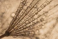 "Abstracte bruintinten: Lijnen en druppels verdwijnen in de achtergrond" is een extreme macrofoto. Een klein stukje wordt hierdoor een beeldvullend onderwerp, en zie je dingen die je normaal snel over het hoofd zou zien. Dit tafereeltje is in werkelijkheid ongeveer 1 a 2 centimeter groot. Deze bewerkte foto heeft de kleuren zwart wit en beige, bruin - sepia.