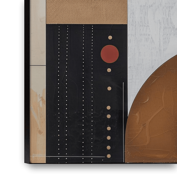 Deze fascinerende collectie constructivistische kunstwerken combineert strakke lijnen en geometrische vormen met een subtiel kleurenpalet. Het gebruik van zwarte, witte en bruine tinten creëert een rustig maar krachtig visueel effect. De abstracte figuren en het spel van vormen en lijnen nodigen de kijker uit voor een reis in de wereld…