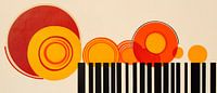 Er ontvouwt zich een harmonieus samenspel van warme rode en gele tinten, omlijst door opvallende zwarte lijnen die doen denken aan de ritmische melodie van geluiden. Deze levendige compositie straalt energie en creativiteit uit en is ideaal voor op kantoor, waar het inspiratie en werkplezier stimuleert.