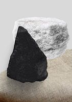 Abstract modern. Landschap collage van stof en edelsteen. Modern minimalistisch. Door de plaatsing van de vormen ontstaat er een interessante compositie. Verrassend beeld!