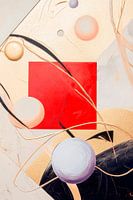 Levendige geometrische vormen dansen op een elegant canvas, terwijl een heldere rode kleur het oog aantrekt. Zachte, glinsterende bollen en gebogen lijnen voegen dynamiek en elegantie toe aan de compositie. Dit kunstwerk, dat ideaal is voor de woonkamer, straalt creativiteit en moderniteit uit en creëert een inspirerende sfeer voor…
