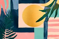 Abstracte compositie met zon en bladeren van Poster Art Shop
