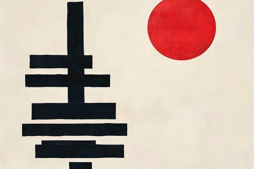 Geometrische helderheid ontmoet lichtgevende accenten - de harmonieuze balans tussen diepzwart en stralend rood ontvouwt zich in een fascinerende compositie. Dit kunstwerk geeft een moderne, minimalistische flair aan elke woonkamer en nodigt uit tot reflectie en verwondering. Geniet van de rustige dialoog van kleuren!