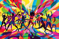 Dit dynamische en kleurrijke kunstwerk brengt energie en beweging in elke ruimte. De abstracte weergave van dansende figuren in felle, levendige kleuren creëert een gevoel van vreugde en vrijheid. Perfect voor moderne interieurs die verlangen naar een vleugje creativiteit en expressie. Laat deze explosie van kleur en beweging uw muren tot leven brengen en inspireer een positieve en levendige sfeer in uw huis of kantoor.