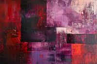 Dit abstracte kunstwerk combineert diepe roodtinten met rijke paarse en zwarte accenten, wat een krachtige visuele ervaring creëert. De verschillende texturen en lagen geven het werk een tastbare kwaliteit die zowel boeiend als intrigerend is. Ideaal voor moderne interieurs, voegt dit stuk een gevoel van diepte en contrast toe aan elke ruimte. Perfect voor een slaapkamer of eetkamer, waar het kan fungeren als een opvallend middelpunt dat de aandacht trekt en tegelijkertijd een sfeer van verfijning en moderniteit uitstraalt.