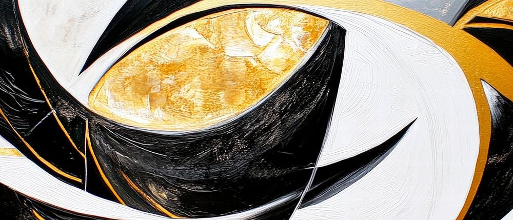 Krachtige vegen van diepzwart en stralende gouden elementen dansen harmonieus op een voorzichtige achtergrond. Deze dynamische compositie straalt elegantie en moderniteit uit, perfect voor een stijlvolle woonkamer of een creatief kantoor. De artistieke balans trekt alle blikken naar zich toe en voegt een vleugje luxe toe aan elke kamer.