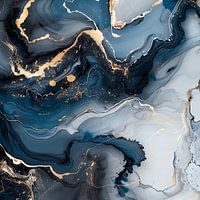 Stromen van diepblauw en wit, afgewisseld met glanzende gouden accenten, creëren een betoverend samenspel in dit prachtige abstracte kunstwerk. Geïnspireerd door de beweging van de oceaan, biedt dit schilderij een mix van rust en dynamiek die elke kijker zal betoveren. Het is ideaal voor moderne ruimtes en voegt een vleugje luxe en…