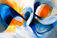 Een dynamisch samenspel van diepblauwe en feloranje golven ontvouwt zich, geassocieerd met energie en creativiteit. De gebogen vormen en zachte overgangen creëren een harmonieuze sfeer die inspireert en kalmeert. Ideaal voor de woonkamer om een levendig, artistiek tintje aan elke kamer te geven.