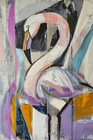 Dit artistieke werk toont een flamingo in een fascinerende mix van abstracte vormen en zachte pastelkleuren. De combinatie van zachte paarse tinten en dynamische lijnen creëert een harmonieuze maar spannende compositie. Ideaal voor kunstliefhebbers die zowel de schoonheid van de natuur als de creativiteit van moderne kunst waarderen. Dit stuk brengt een subtiele elegantie en een vleugje extravagantie in elke kamer, perfect voor een stijlvolle en inspirerende sfeer.