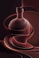 Dit ontwerp toont een abstracte weergave van een fles, omringd door vloeiende, golvende lijnen in verschillende tinten bruin en koper. De lijnen creëren een gevoel van beweging, terwijl de minimalistische vorm van de fles centraal staat in het ontwerp. De rustige kleuren en het strakke lijnenspel geven het een moderne, elegante uitstraling, perfect voor een minimalistisch of eigentijds interieur. Dit kunstwerk roept een gevoel van verfijning en eenvoud op, waardoor het een ideale toevoeging is aan ruimtes zoals een woonkamer of kantoor. Het subtiele gebruik van kleur en vorm zorgt ervoor dat het ontwerp in harmonie blijft met zijn omgeving, zonder opdringerig te zijn. Een tijdloos stuk dat moeiteloos in verschillende interieurstijlen past.