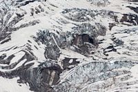 Mount Rainier is een vulkaan van ruim 4300 meter hoog in de Verenigde Staten. De vulkaan is al meer dan 150 jaar niet uitgebarsten. De vulkaan is bedekt met sneeuw en ijs. Op Mount Rainier bevinden zich ongeveer 20 gletsjers. Deze foto toont een deel van één van de gletsjers wat voor een abstract beeld zorgt.