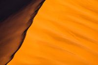 Een detail van een rode zandduin in de woestijn langs de route naar de Sossusvlei in Namibië. De foto is laat in de middag geschoten: de laagstaande zon creëert dan de meest prachtige contrastrijke schaduwpatronen op de zandduinen.