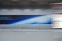 Abstracte foto met fijne kleuren. De beweging in de foto komt door de rijdende metro van waaruit de foto is gemaakt. Door de bewegingsonscherpte ontstaat een abstract beeld.
