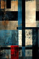 Een visuele ervaring die de essentie van abstracte kunst combineert met een vleugje retro. Strakke lijnen en geometrische vormen in een palet van diepzwart, felrood en verschillende tinten blauw, die doen denken aan de industriële esthetiek van de stad. De verweerde texturen en versleten randen geven het beeld een rauwe maar…