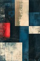 Een visuele ervaring die de essentie van abstracte kunst combineert met een vleugje retro. Strakke lijnen en geometrische vormen in een palet van diepzwart, felrood en verschillende tinten blauw, die doen denken aan de industriële esthetiek van de stad. De verweerde texturen en versleten randen geven het beeld een rauwe maar…