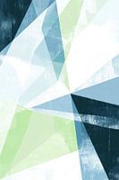 Een fascinerend samenspel van geometrische vormen en zachte kleurtonen ontvouwt zich hier, waar koele blauwtinten fris groen ontmoeten. Deze dynamische compositie geeft elke kamer een modern tintje en nodigt uit tot creatieve inspiratie. Het is ideaal voor een stijlvol kantoor of een lichtovergoten woonkamer.
