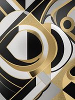 Abstracte geometrische retro kunst in zwart, goud en wit.