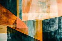 Dit ontwerp is een moderne abstracte compositie waarin geometrische vormen elkaar overlappen in een harmonieus samenspel. De warme tinten van oranje, geel en beige contrasteren subtiel met de koelere tinten blauw en groen. Deze balans tussen kleuren en texturen creëert een visueel dynamisch beeld dat zowel rustgevend als energiek is. Ideaal om een stijlvolle en artistieke sfeer toe te voegen aan een interieur. Perfect voor woonkamers, kantoren of ruimtes die een creatieve touch kunnen gebruiken.