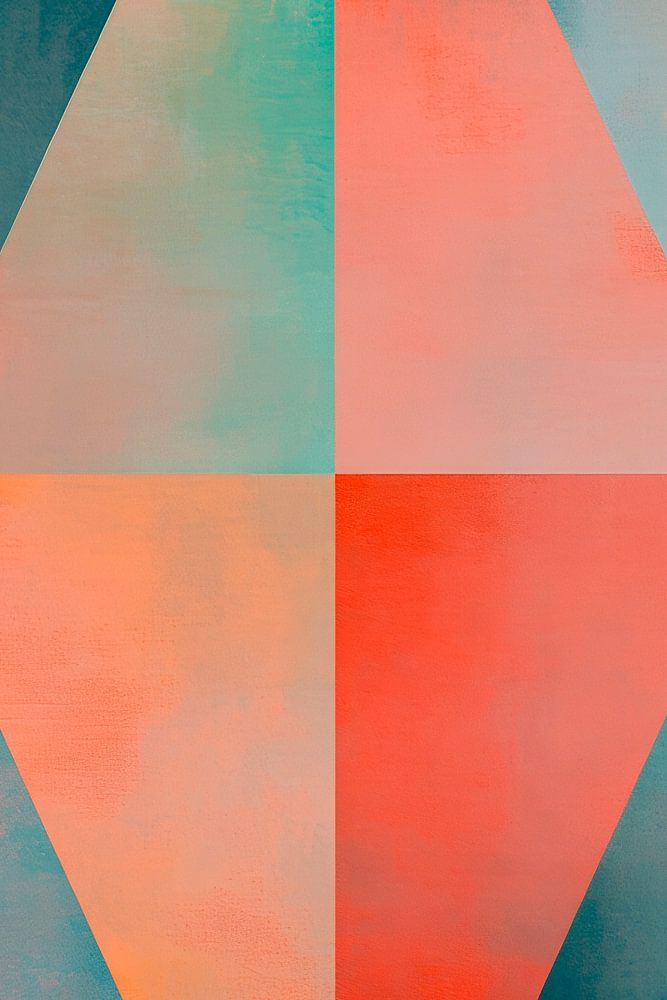 Hier ontvouwt zich een harmonieuze combinatie van zachte kleuren en geometrische vormen. De krachtige symmetrie van de driehoekige elementen straalt een kalme energie uit. Dit kunstwerk is perfect voor de woonkamer, waar het bijdraagt aan de gezellige sfeer en de aandacht van gasten trekt.
