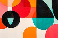 Een harmonieus samenspel van levendige kleuren en dynamische vormen boeit de kijker onmiddellijk. De levendige rode en oranje tinten worden afgewisseld met zacht groen en zwart om de kamer energie te geven en op te frissen. Dit kunstwerk zou geweldig staan in een moderne woonkamer of creatief kantoor om inspiratie en creativiteit aan te moedigen.