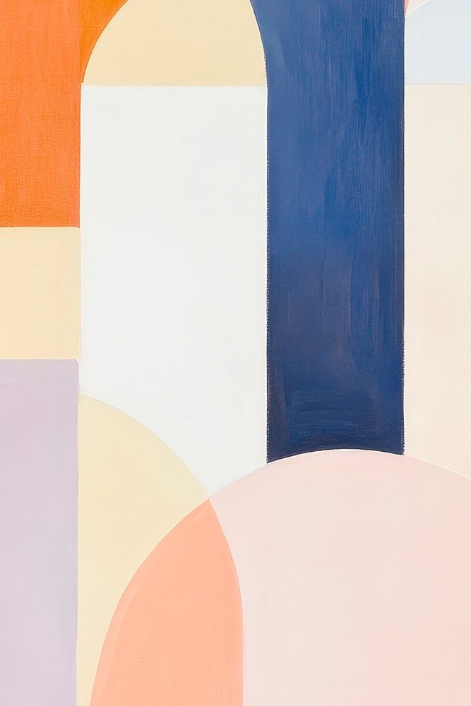 Zachte kleurtonen ontmoeten harmonieuze geometrische vormen die samensmelten in een elegante dans. De zachte rondingen en contrasterende bogen creëren een rustgevende sfeer. Ideaal voor de woonkamer, waar het een gevoel van lichtheid en stijl uitstraalt en uitnodigt tot inspirerende gesprekken.