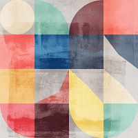 Geïnspireerd door het modernisme en Bauhaus-bewegingen, collage van geometrische vormen en texturen in levendige retro-kleuren.