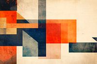 Met zijn levendige rode, blauwe en beige kleuren die dynamisch in elkaar overlopen, creëert dit kunstwerk een levendige, moderne sfeer. De geometrische vormen voegen structuur en een vleugje elegantie toe aan de kamer. Perfect voor in de woonkamer om gesprekken te stimuleren en creativiteit aan te moedigen.