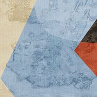 Deze serie grafische geometrische kunstwerken richt zich op grote, eenvoudige vormen gelaagd met subtiele wabi-sabi-texturen. De kromme elementen zijn gerangschikt met een gevoel van balans dat zowel retro als modern aanvoelt, met een combinatie van gedempte tinten bruin, botergeel, oranje, beige en zacht blauw. De getextureerde oppervlakken geven de stukken een tactiele diepte, terwijl de duidelijke geometrie de look sterk en minimaal houdt. Deze werken putten inspiratie uit mid-century design en retro grafische esthetiek, maar zijn bijgewerkt met een eigentijds gevoel dat goed werkt in moderne interieurs. Hun combinatie van geometrie en oppervlaktestructuur maakt ze veelzijdig - ze voelen zich net zo thuis in een industriële loft, een Japans geïnspireerde woonkamer of een eclectische ruimte die waarde hecht aan gedurfd design met subtiele warmte.De kunstwerken hebben een rustige kracht en bieden ritme en structuur zonder zwaar te worden. Ze zijn ideaal voor kopers die op zoek zijn naar abstracte geometrie met een vleugje zachtheid, waardoor ze geschikt zijn voor Scandinavische interieurs, huizen met wabi-sabi-inspiratie of ruimtes met een eenvoudige en natuurlijke stijl. Deze geometrische werken zijn perfect als opvallende stukken op zichzelf of als onderdeel van een serie en brengen designkarakter en tijdloze aantrekkingskracht aan de muur.