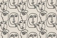 Abstracte gezichten, zogenaamde one line drawings, tekeningen uit een lijn. Zwart tegen een beigekleurige achtergrond. Hip, modern en héél mooi als behang.