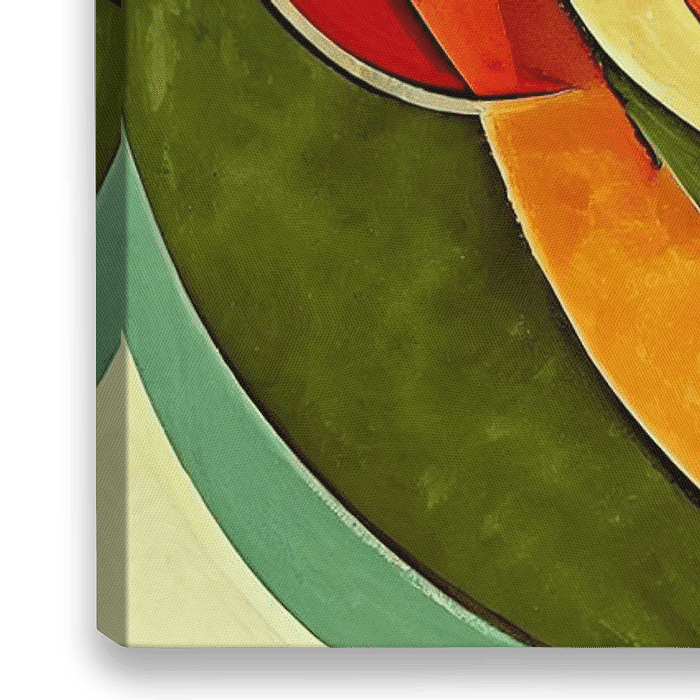 Dit werk van abstracte gezichten speelt met vormen en kleuren, waardoor een fascinerend visueel verhaal ontstaat. De verschillende gezichten lijken elkaar te overlappen en te mengen, wat een gevoel van dynamiek en beweging oproept. De gebruikte kleuren zijn gedurfd en variëren van diepe tinten tot levendige accenten, waardoor het een…