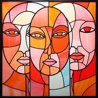 Abstracte gezichten, kleurrijk, van opzij gezien, glas in lood stijl.