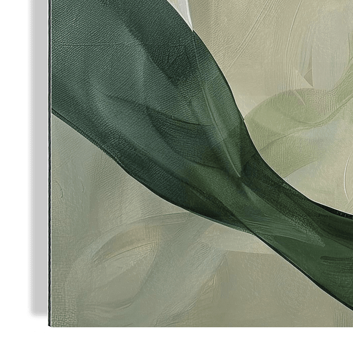 Ervaar de harmonieuze combinatie van zachte golven en natuurlijke kleuren in dit moderne kunstwerk. De lagen groen en beige creëren een diepe visuele textuur die een kalm en elegant gevoel toevoegt aan elke kamer. Ideaal voor woon- en werkruimtes die een ontspannen en stijlvolle sfeer willen creëren.