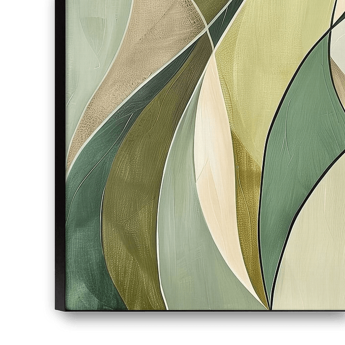 Ervaar de harmonieuze combinatie van zachte golven en natuurlijke kleuren in dit moderne kunstwerk. De lagen groen en beige creëren een diepe visuele textuur die een kalm en elegant gevoel toevoegt aan elke kamer. Ideaal voor woon- en werkruimtes die een ontspannen en stijlvolle sfeer willen creëren.