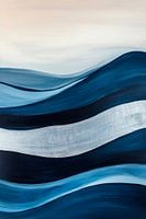 Zachte golven in verschillende tinten blauw stromen harmonieus over het doek en creëren een rustgevende sfeer. De elegante zilveren streep geeft een gevoel van frisheid en uitgestrektheid. Dit kunstwerk past perfect in de woonkamer, waar het rust en sereniteit kan uitstralen. Ideaal voor momenten van ontspanning en plezier.
