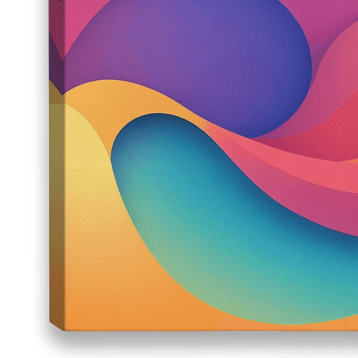 Breng wat kleur in je huis met dit A.I. kunstwerk van golvende vormen in zachte door elkaar lopende kleuren.