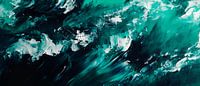 Golven van diep turquoise en zachte tinten wit vloeien over elkaar heen alsof ze de kalmte van de oceaan vangen. De dynamische, bijna hypnotiserende beweging trekt de aandacht en geeft een gevoel van vrijheid en avontuur. Ideaal voor de woonkamer, waar het de ruimte vult met een krachtige, rustgevende energie.