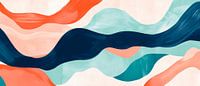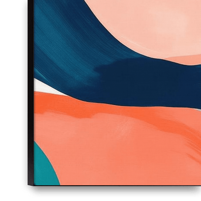 Zachte golven van sterke blauwe en koraaltinten dansen harmonieus over het doek en creëren een ontspannen sfeer. De vloeiende vormen voegen dynamiek toe aan elke kamer en nodigen uit om te dromen. Ideaal voor een woonkamer of een creatief kantoor waar kleur en levensvreugde welkom zijn.