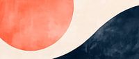 In zachte tinten crème, koraal en diepblauw ontvouwt zich een harmonieuze compositie die rust en elegantie uitstraalt. De gebogen lijnen en de grote rode cirkel creëren een aantrekkelijke dynamiek die onmiddellijk in het oog springt. Ideaal voor een moderne woonkamer of als stijlvol hoogtepunt op kantoor, dit kunstwerk brengt frisse inspiratie in elke kamer.