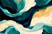 Zachte golven van diepblauw en delicaat goud gaan harmonieus samen en stralen elegantie en rust uit. Deze levendige compositie geeft een gevoel van diepte en dynamiek aan een moderne woonkamer en nodigt je uit om je gedachten te laten gaan. Ideaal voor een stijlvolle sfeer die inspireert en ontspant.
