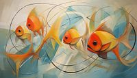 Abstracte goudvissen kubisme panorama schilderij met een prachtige en unieke stijl. Met prachtige kleurtinten en een uniek ontwerp maakt dit tot een stijlvolle fotoprint die prachtig staat in elke ruimte. 100% uniek en origineel!