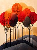 Abstracte grillige bomen in rood
