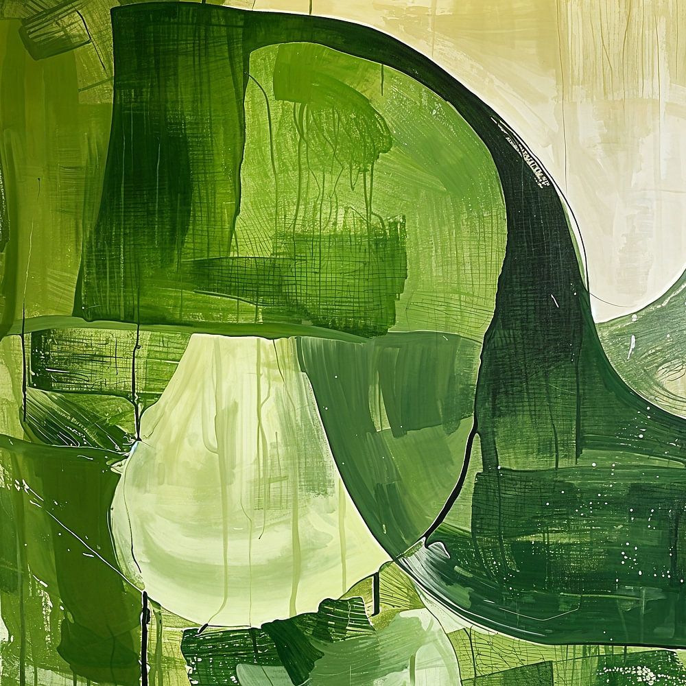Deze moderne kunstwerken hebben vloeiende groene vormen die een harmonieuze en rustgevende esthetiek creëren. De vloeiende overgangen en dynamische lijnen creëren een ontspannen sfeer, ideaal voor woonruimtes, kantoren of galerieën. Perfect voor liefhebbers van abstracte kunst en natuurmotieven, leggen deze beelden de essentie van beweging en rust vast. De verschillende groentinten harmoniëren perfect en brengen een frisse, natuurlijke elegantie in elke kamer.